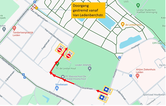 In deze periode wordt het verkeer in de Anthonie Duycklaan en de van Beuningenlaan vanaf de Ledenberghstraat éénrichting voor auto’s. Via de Houtlaan naar de Warmonderweg.